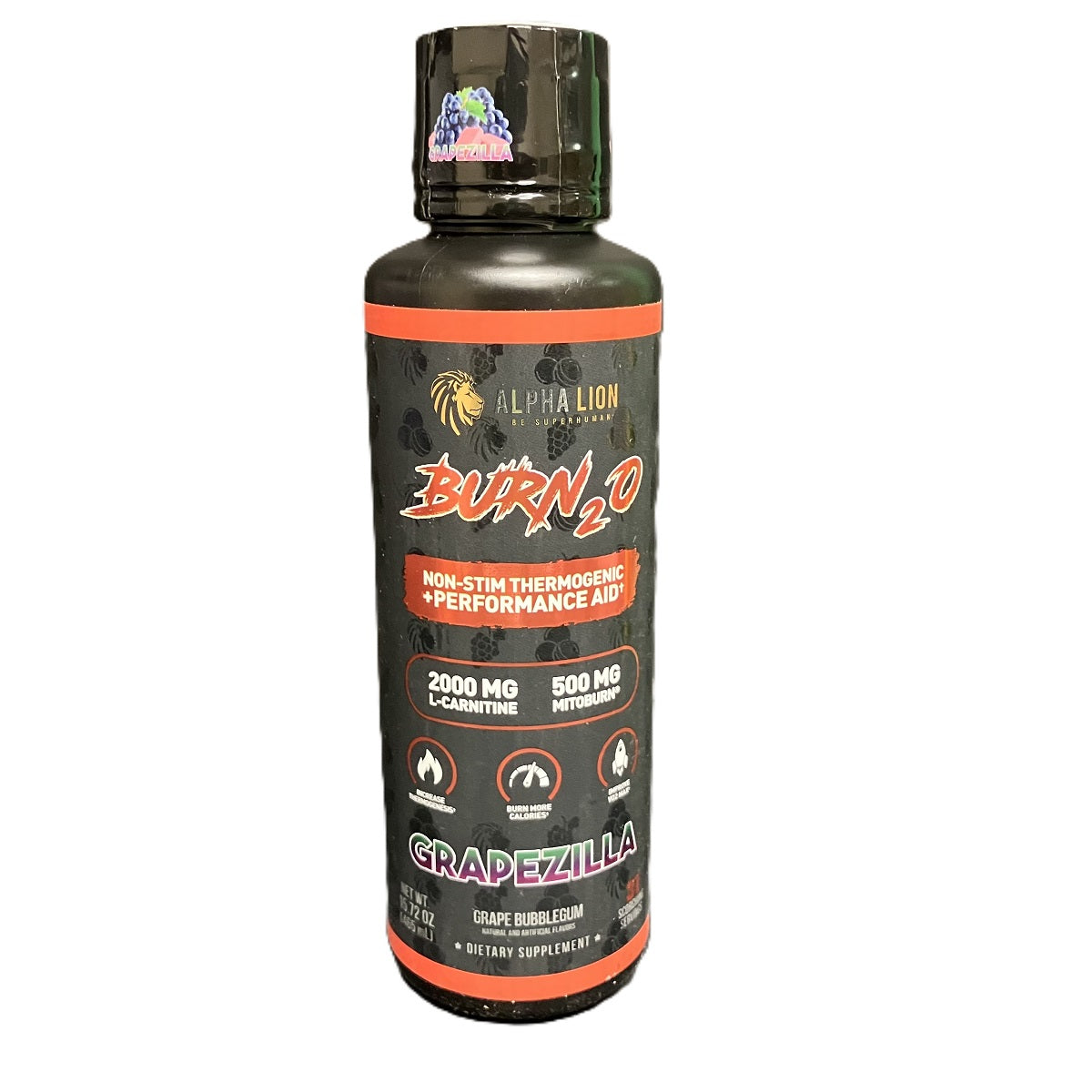Alpha Lion Burn2O L-Carnitine Liquid Natural Energy and Metabolism Booster for Weight Loss31 Servings Grapezilla 15.72oz